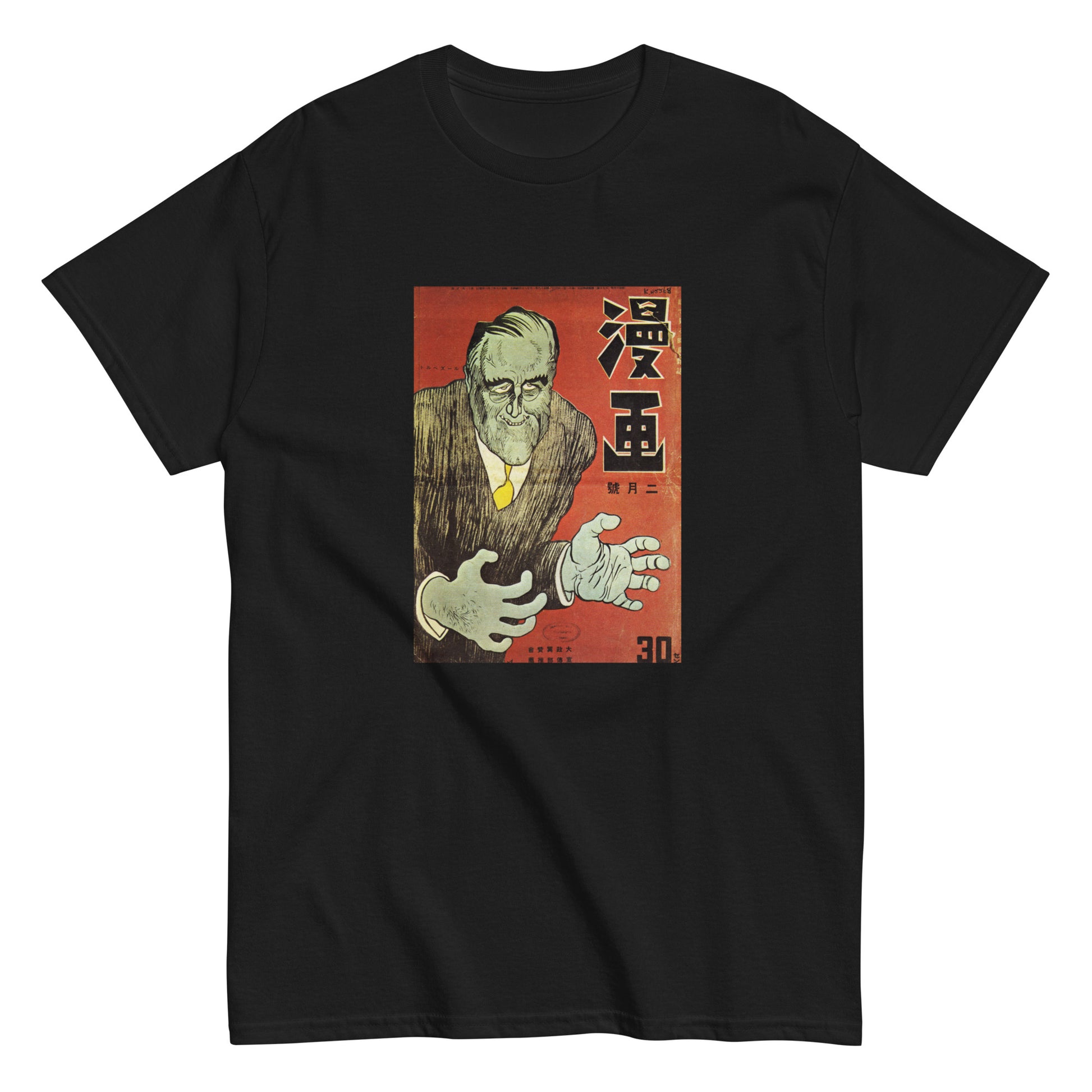 During World War II, the Japanese press demonized Franklin Delano Roosevelt in manga form, presenting the 32nd president as a ghoulish monster. We all know FDR wasn't REALLY a monster, but this design helps illustrate the propaganda common in Japan at that time as a healthy juxtaposition to the US demonizing the Japanese and locking Japanese-Americans in concentration... err, internment camps.
